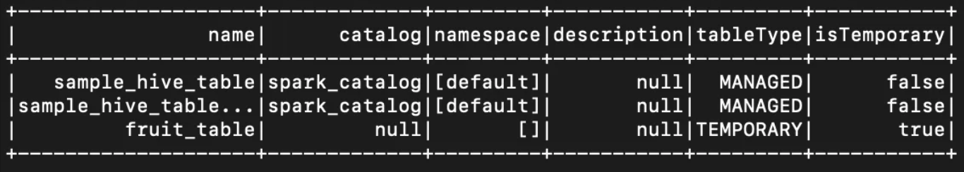 val df2 = spark.sql("SELECT _1,_2 FROM fruit_table")